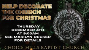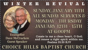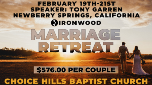 Welcome to Choice Hills Baptist Church. Our goal is to show you the love of Jesus Christ and how He can change your life.